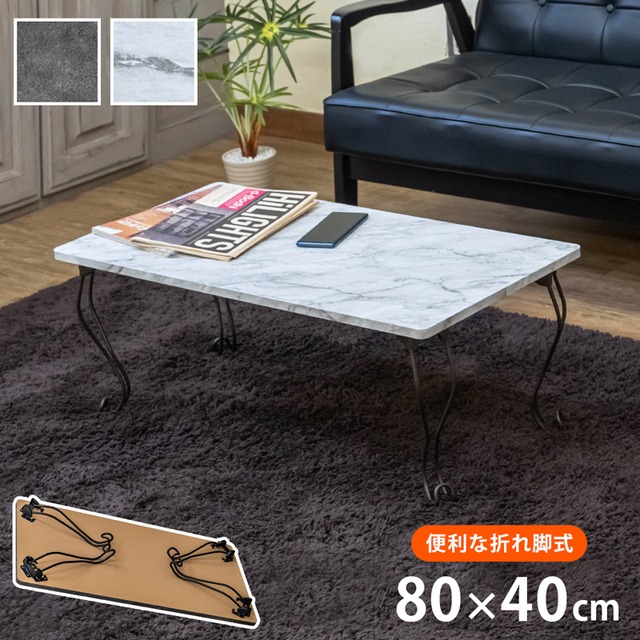※北海道、沖縄・離島への配送は不可となっております 何卒ご了承ください。 モダン折れ脚テーブル 角型です 80×40cmの長方形天板です 天板の柄は個性的な石の模様と木目柄です 猫脚で可愛いフォルムです 脚は折りたたむと厚さ約8cmになり収納に便利です コンクリート柄ダークコンクリート(DCO)、大理石柄マーブルホワイト(MWH)の2色展開です ※本物の大理石・コンクリートではありません!※ 木目柄アンティークブラウン(ABR)、コンクリート柄ダークグレー(DGR)、コンクリート柄ライトグレー(LGR)、木目柄ナチュラル(NA)、大理石柄マーブルブラック(MBK)は、取り扱い終了しました 幅800×奥行400×高さ315mm(梱包サイズ:幅850×奥行410×高さ100mm) 天板厚:約15mm 折りたたみ時の厚み:約80mm 本体重量:4.2kg(梱包重量:5.0kg) 完成品(1個口) 天板:合成樹脂化粧繊維板 脚:スチール(エポシキ粉体塗装) 原産国:台湾 ths27abr