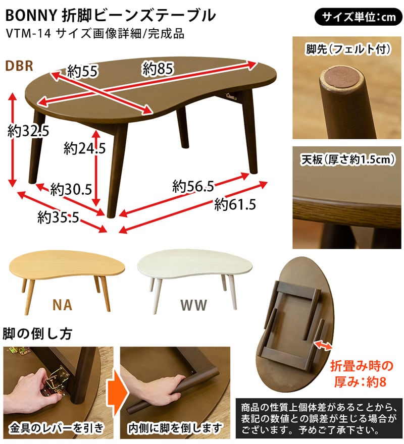 ダークブラウン(DBR)、ナチュラル(NA)、ホワイトウォッシュ(WW)の3色展開です
